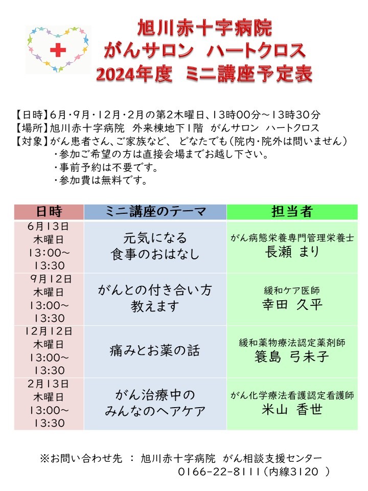 がんサロン『ハートクロス』 2024年度 ミニ講座の年間予定 / お知らせ / 掲示板