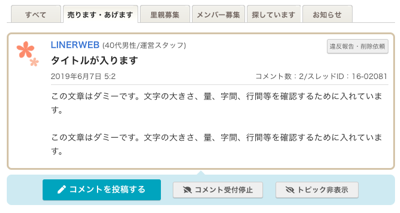 掲示板上に、参加したいトピック(話題)をみつけたら、トピックにコメントをつけます。
