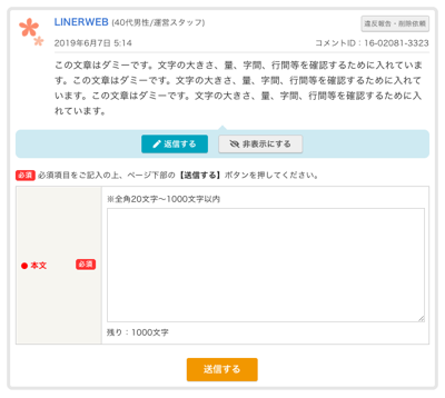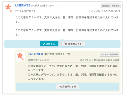 - 返信コメントを書いたら、