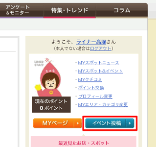 「ライナーウェブ会員」がイベント情報を投稿するには?