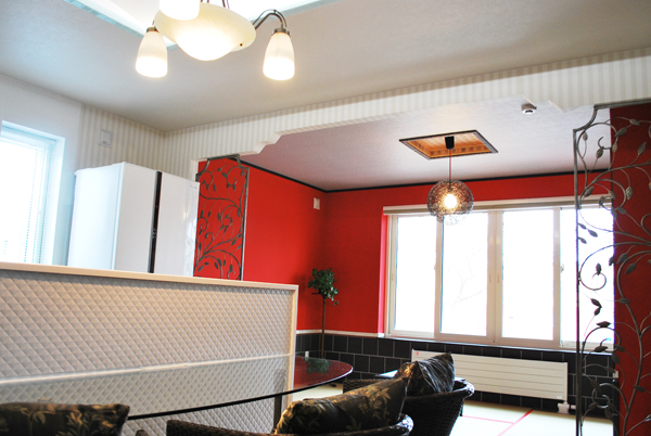 「おじゃましまーす。きゃーステキ!!」ダイニングのドアを開けるなり歓声をあげるライナー陣。目は奥の赤い和室に釘付けです。映画に出てきそうだね!