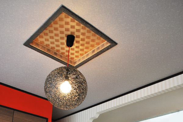 壁の赤にあわせて畳のヘリも絶対に赤くしたかったそう。それはなかなか見つからなくて、京都から取り寄せたとのこと。こだわってます。