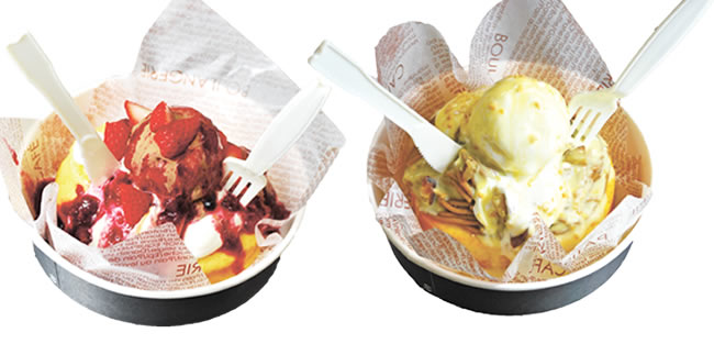 自家製ジェラートと生クリームがたっぷりのった「ジェラートon theパンケーキ」は8月の週末限定商品。モンブランとベリーの2種類あり、食べられるのは27日(土)、28日(日)の2日間が最後です。