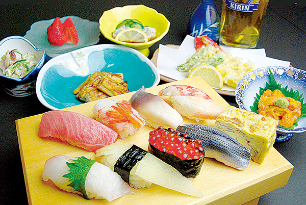 鮮度抜群の握りやほどよくまとったサクサク衣のたらばの天ぷら、深い甘味が堪能できるウニのお造りなど、旬の食材をふんだんに使った贅沢コース料理。ボリューム満点の内容で、寿司屋ならではの魚介づくしが嬉しい。