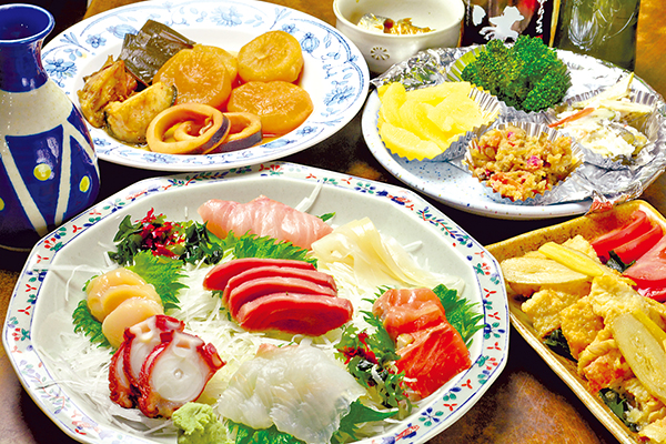 【コース内容】・刺身・焼物・煮物・サラダ・串物・鍋・飯物※内容・品数は仕入れにより変動 【飲み放題】120分