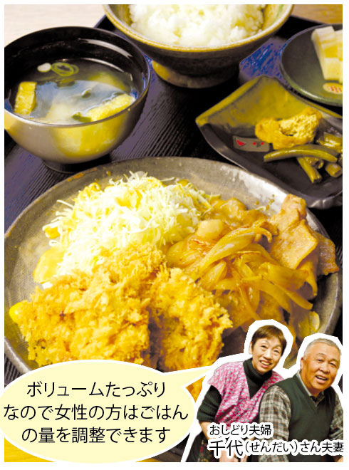 「ヒレカツ・しょうが焼き定食」は、サクサクで柔らかいヒレカツと、甘めの味付けで食が進むしょうが焼きに、農家直送のお米がついて950円(税込)。ボリュームあるランチと、気さくな夫婦からパワーをもらえます。