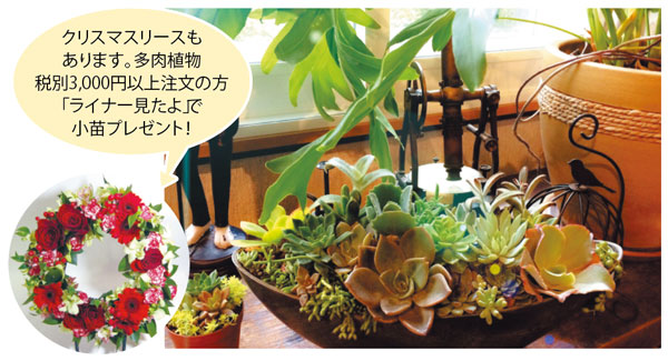 お花のスペシャリストによるアレンジや多肉植物の受注販売も