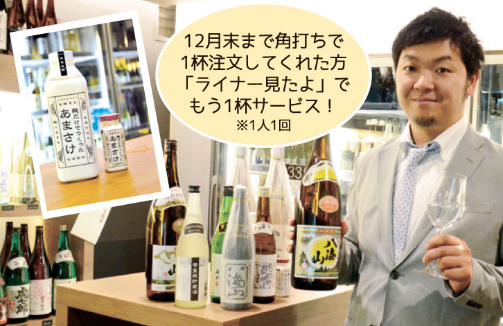 人気の地酒を販売するほか、13時から20時までは、店内で立ち飲みできる角打ちをやっています。半合一杯200円~。12月8日放送予定の「カンブリア宮殿」では、同店推薦の酒蔵が紹介される予定だとか。