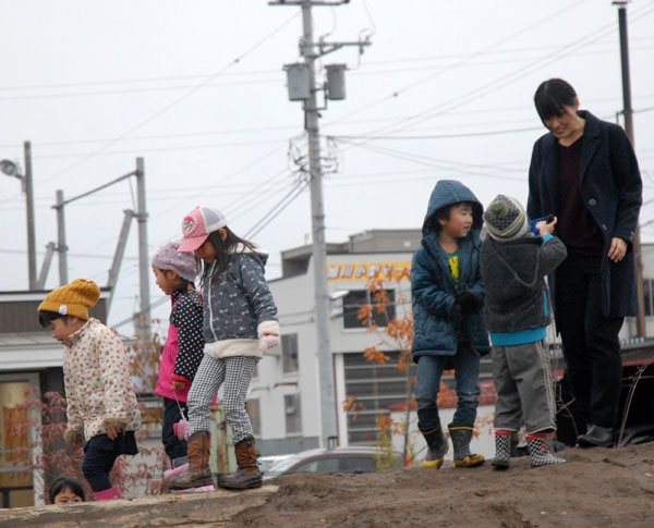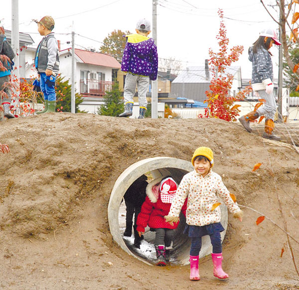 雨や雪でぬかるんだ泥も子供にとっては絶好の遊び道具なんですね/おひさま保育園☎0166-33-7573
