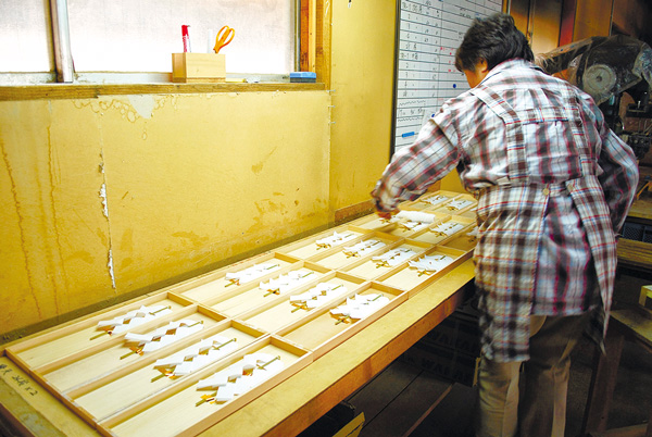 現在は神社の木札や絵馬の制作がメインで、「日光東照宮の木札もうちなのよ」だって。神々しいお仕事も作り手はご近所のお母さんたちだなんて、親近感が湧きますね。き花のあの木箱も作っています/北幸加工☎0166-31-4121