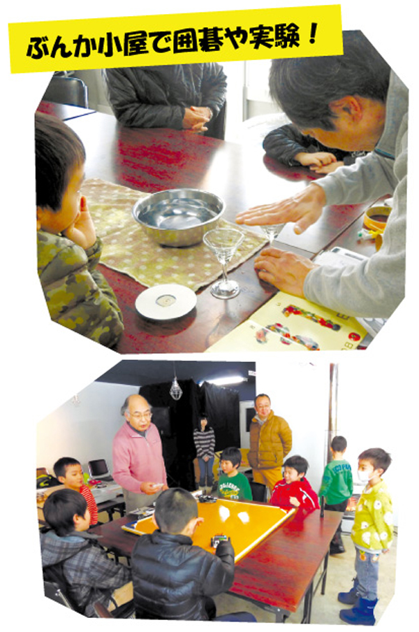 まちなかぶんか小屋で小~中学生向けのワークショップが開かれます。1月7日(土)午後1時からは「子ども囲碁教室」(参加無料)、1月8日(日)①午後1時から②午後3時からは、自由研究にぴったりな「村住先生のサイエンス・ラボ」(材料費500円、各回定員5名)、10日(火)午後2時からは、気軽に工作を楽しむ「原部先生の実験と工作」(材料費100円)。いずれも2時間程度、要予約。