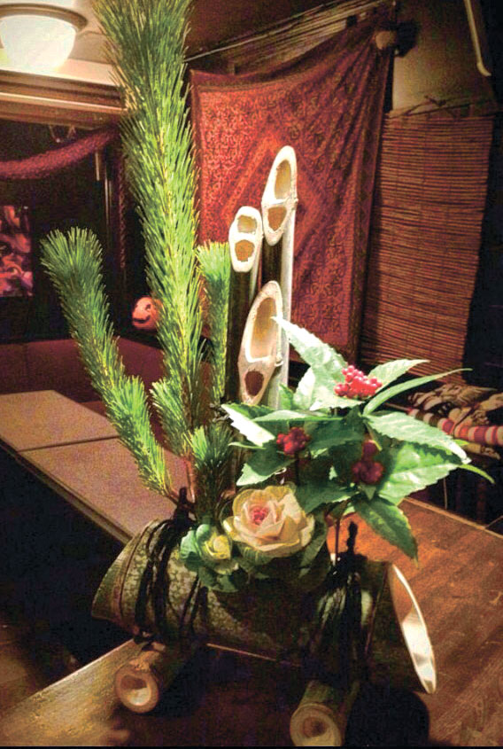 竹筒の使い方がユニークなもの、旭川の樹木オンコの枝を使ったもの、盆栽の技法を取り入れたものと、荒木さんらしいアレンジが光ります。とはいえ基本的には縁起のよい松竹梅をベースに、葉牡丹や南天で少し色を添えて、伝統を重視したすっきりとした仕上がりが目標。