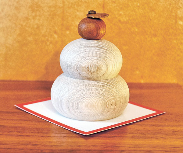 クラフトのまち・旭川らしい木製の鏡餅は、ブラウンボックスのオリジナルで、木肌の白さと木目が美しいセンの木で餅を、イチイでミカンを作っています。「長く飾っていく中で、木の自然な風合いが増していきますよ」とスタッフ。ナチュラルな洋風の家庭に馴染みそうです。