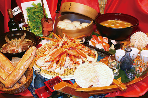 旭川グランドホテル(旭川市6条通9丁目)は、1階アドニスで1月1日(日・祝)~3日(火)の三が日限定で、「ニューイヤー・ランチ&ディナー」を実施します。選べるメイン料理+サラダ、スープ、デザートなどのビュッフェの組み合わせで、ランチは一人1800円、ディナーは2500円。メインは、US産牛ロースステーキXO醬ソース、ソイと野菜のヴァプール ナージュ仕立て、蟹と海老のリングイネビクスソースなど6種類。ディナーはさらに、北海道産牛肉の赤ワイン煮込みが加わります。