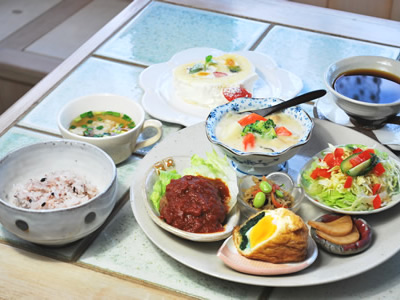 バイタリティ溢れるママによる、ひと手間もふた手間も加えたこだわりの品が並ぶ週替わりの「マグノリアランチ」(980円)、無添加生クリームをたっぷり使用した自家製ケーキが年代を問わず人気です。