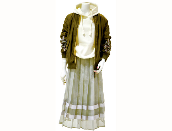 大人気のMA-1に刺繍♪あえて甘めに、フェミニンに仕上げて