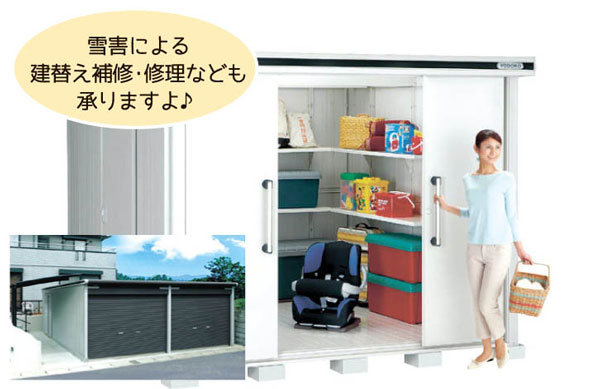 イナバやヨドコウなど、数十社のガレージや物置の正規取り扱い店として、販売や修理、設置を行っています。ストーブ・給湯設備の修理や管工事など、住宅の困りごとは相談を。見積無料です。