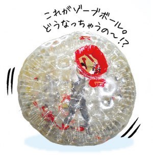 きのうから登場した新感覚の冬遊び、バブルボールとゾーブボール。ビニール製の巨大ボールに入って、転がったりぶつかったりして遊びます。バブルボールの大きさは直径約1・5m。大人なら頭から膝あたりまですっぽり入り、足は出ているので自由に移動できます。