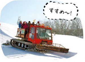 ゲレンデの雪を踏み固める圧雪車に乗って、旭山の周遊体験はいかがですか。巨大なベルトコンベアーが回転してぐんぐん進む、豪快な乗り心地!晴れた日には頂上から旭川の街並みを一望できます。中学生以上600円、小学生以下200円。