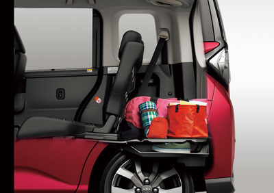 買い物からレジャーまで、あらゆるシーンで活用できる多彩なシートアレンジ。フロントシートを倒し、後席をリクライニングするとゆったりくつろげるフルフラットモードに。リヤシートを前方にダイブイン格納すると、自転車などの大きな物や丈の長い荷物も積載可能。目的に合わせて簡単に模様替えができます。幅広いバックドア開口部と、低い荷室フロア高で、重い荷物もラクに積み降ろしが可能です。
