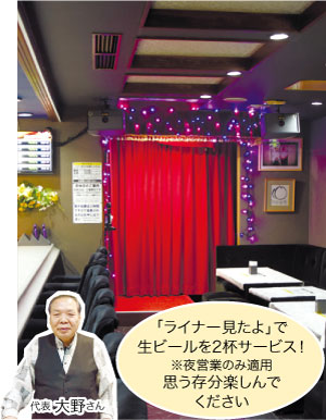 音楽事務所、タレント派遣、ボイストレーニングを行っているオーナーは、歌手歴50年の大ベテラン。お店にはカラオケ好きの人が昼夜問わず集まります。