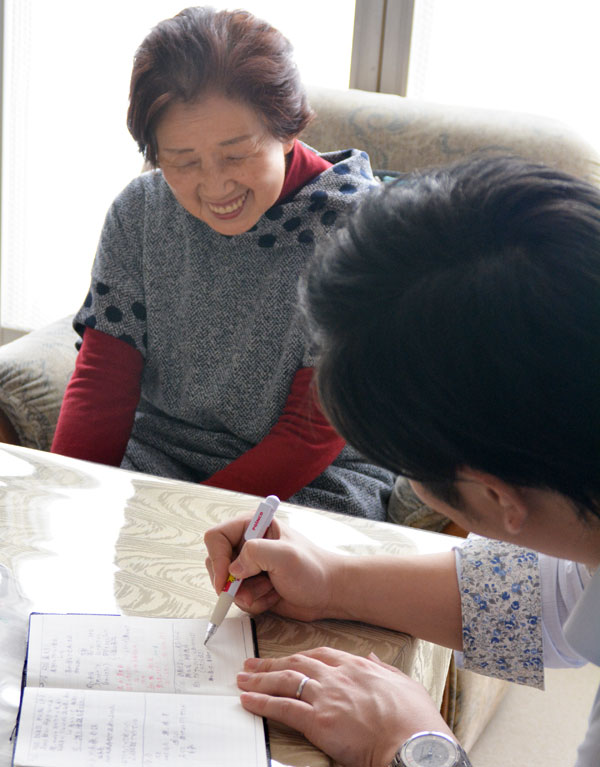 あまり難しいことは考えずに、結構自由にお話をしています。一緒にテレビを見たり、お茶を飲んだり…。仕事なので言い方は少し違うかもしれませんが、自分のおばあちゃんの家に行くような感覚でしょうか。