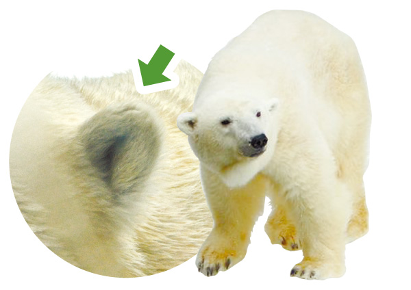あんまり大きいと寒いので、耳は他のクマより小さめ(寒い地域の動物はみんな突起物が小さかったりなかったりする)。大きさや聴力は、人間と同じくらい。
