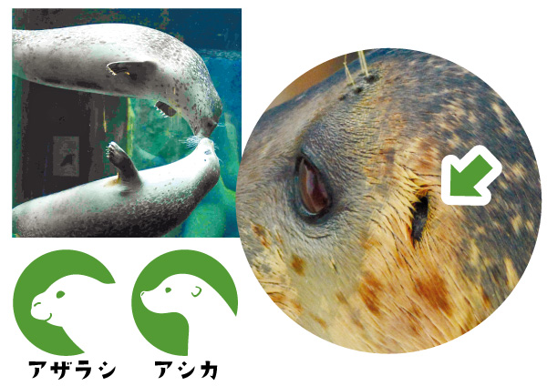 水の抵抗を少なくするため、耳たぶがない。水中では耳の中の弁を閉じられるほか、身体をすぼめて肩(?)で耳を塞ぎます。ちなみにパッと見似ているアシカやオットセイなどは耳たぶがある。