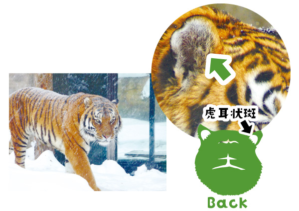 耳の裏に「虎耳状斑」という目のような模様があるので、授業中に後ろを向いて寝ていてもバレない。(一説には、後ろにいる動物を威嚇するためと言われている)