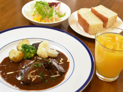 - 道産黒毛和牛ビーフシチュー(フォカッチャ・サラダ・ドリンク付)1,800円