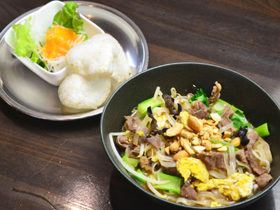 - 牛肉パッタイ(ミニサラダとエビせん付き)880円