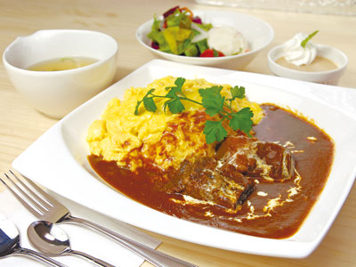 - ビーフシチューオムライス(スープ、サラダ、ミニデザート付き)1,490円