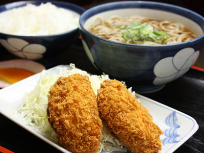 蕎麦は丁寧に打たれた更科蕎麦と、濃厚でしっかりとダシを効かせた辛口の藪系のタレが特徴。肉厚の道産豚を使用したカツ丼や、丼からはみ出すほど大きな海老が乗ったえび天丼など丼物も充実し、セットメニューも豊富です。特にオススメは平日だけ店内でのみ食べられるカキフライセット。広島県産の大粒のカキだけを厳選し、サクサクの衣の中にカキの旨みをギュッととじ込めた濃厚な味わい。冷たい蕎麦にも変更でき、ご飯の大盛りは無料です。
