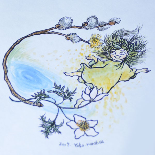 お菓子の製造販売や樹脂粘土のワークショップなどを行う指定就労継続支援B型事業所「創房みな・みな」や、ギャラリーショップ・ガレレーアで出会う、独特なタッチの女の子。運営のNPO法人赤い実の会(ねこやなぎ作業所)での展示会をきっかけに、イラストレーター花房葉子さんが描き下ろした原画をもとにしています。モチーフはねこやなぎの木の妖精。施設利用者がパンフレットや壁画に描くなど、大切なシンボルキャラクターとして活躍しています。/指定就労継続支援B型事業所 創房みな・みな