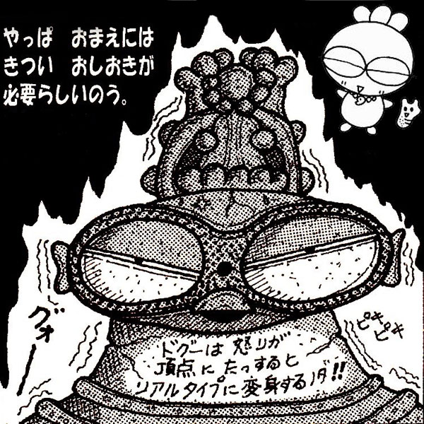 子供向けの「博物館展示ガイドマンガ」制作にあたり、博物館学芸員がひらめいた遮光器土偶キャラ「ドグー」。影の学芸員で、博物館の竪穴住居に住み、身長・体重はそのときの気分によりけり。年齢は縄文時代生まれの10万歳。普段はおっとりフェイスですが、怒ると豹変しちゃいます。/旭川市博物館