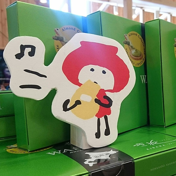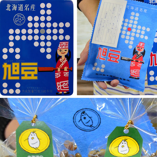 旭川のド定番土産といえば、共成製菓の旭豆。昭和30年代に生まれたアイヌの女の子のキャラクターは、心に染みるあったかさ。「パッとみて北海道らしさがわかるものにしたいと思って採用したはず」と、公募で決めたそう。「実は社内で〝お豆さん〟と呼んでいるキャラクターもいるんです」ってほんとだ!これぞ、へたうま。「社員のお子さんが描いた人の絵らしくて。ほら、子供って顔から手足が生えたような人間、描いちゃうじゃない」。/旭豆