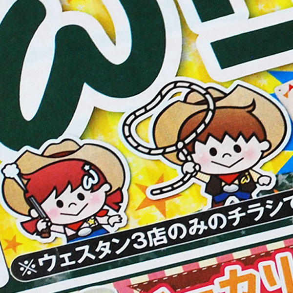 スーパーマーケットのウェスタンは平成元年、旭川市川端に1号店が開店。市内の西側にあること、お肉を中心に食料品を販売していたことから、アメリカ西部のカウボーイをイメージして「ウェスタン坊や」「ウェスタンちゃん」が誕生しました。いまチラシでよく見かけるのは2代目なんだって。/ウェスタン