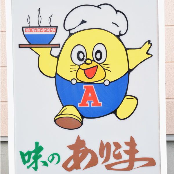 「大雪の山奥から旭川に出てきて食べた『ありこまのラーメン』に惚れこみ、そのままお店に住み着いてしまった、という設定です」とやけに流暢に教えてくれた店主。「ありタン」はたまごネコ科の架空動物で、持っているのは大好きな醤油ラーメン。好物はかっぱえびせん。え?なんで?「それは亡き夫が決めた設定で・・、なんででしょう・・・」。定休日表示は夏バージョンと冬バージョンの2種類があるんです。/味のありこま