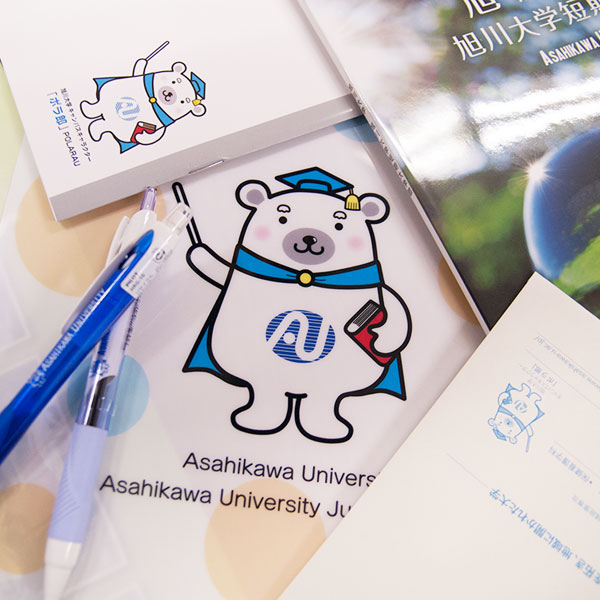 ポラ郎は大学教授。地域に親しまれるイメージキャラクターを作ろうと全国公募し、学生と教職員の投票から選ばれました。ホッキョクグマpolar bearと、旭大のイニシャルAUを合わせて「POLARAU」。北極星の英訳Polarisのように、地域に輝くオンリーワン大学を目指そうという願いも込められています。/旭川大学・旭川大学短期大学部