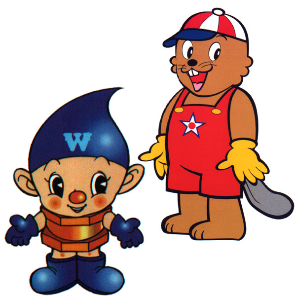 市内のマスコットキャラとしては、かなりのベテラン。水道局の「水道ぼうや」は昭和50年ごろ誕生し、デザインは時代とともにちょっぴり進化。額のWはもちろんWATERのW。体は水でできていて、服は水道管!一方、下水道の専属マスコット「カンタくん」は、ダムを作ることができるというビーバーがモデルで、太い下水道を〝カンタ〟ンにどんどん作っていくことから命名されました。/旭川市水道局