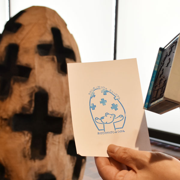 絵本作家の堀川真さんが生んだシロクマ「ウッディ」。豊かな森林資源と木工産業の盛んな旭川らしく、美術館のコレクションの柱のひとつは「木の造形」ですからね。来館記念スタンプや印刷物で出会えます。/北海道立旭川美術館