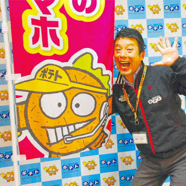 旭川ケーブルテレビ「ポテト」のマスコットキャラクター。家族をつなぐ、地域をつなぐ、未来をつなぐ、じゃがいもの怪獣。出典は昨年大ヒットした「ゴ○ラ」でしょう。そういえば、昔のディレクターってサンバイザーかぶってるイメージあるかも。待てよ、メガホン持ってるから映画監督?/旭川CATV