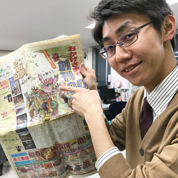 創刊20周年号には、ふわもこタッチのジャックが登場。漫画が得意な新人スタッフ(写真の藤井、当時は20歳でした)が描きました。