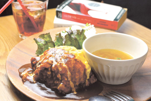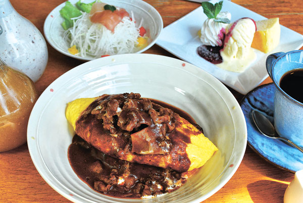 牛肉を赤ワイン、3種類のキノコを白ワインで煮込んだ「ハッシュドビーフのオムライスセット」(1,400円)。