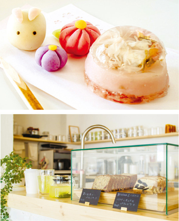 あなたのライフスタイルに溶け込む「USAGIYAボトル」(1,300円税別)は30日間、何度でもセレクト茶が楽しめる定額システム。また、気軽に手が出せるお茶菓子(100円税別〜)も楽しみの一つ。テイクアウト、イートインで