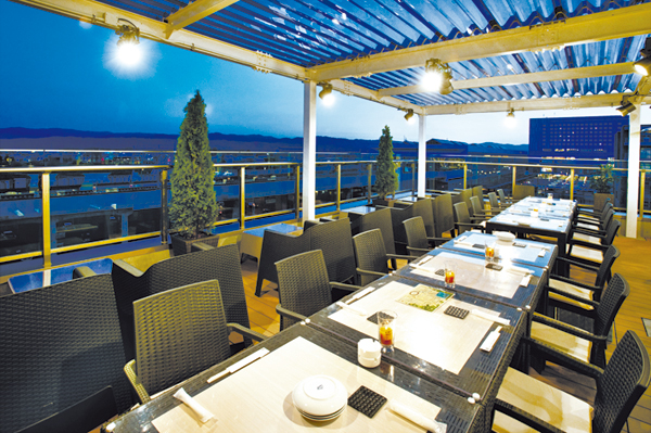 - 北彩都エリアや大雪山を一望できるマルウンホール屋上のビアカフェ