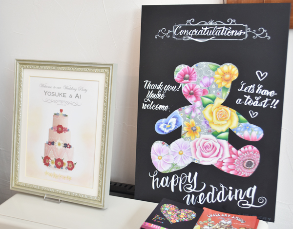 このほか、自分で作る結婚指輪やウェルカムボード、ドレス選びの参考になる骨格スタイル分析、カラーセラピーやタロット占いなど、強力なサポーターたちがブースを出店します。チョークアートや押し花は、近く迎える母の日のギフトにもおすすめです。「価値観をチェックできるカラーテストは、パートナーと一緒に受けるとお互いの考えをすりあわせやすくなりそう。お式の内容を決めるときに、ケンカにならずにすむかもしれませんよ~(笑)」と江口さん。どれも1000円前後で制作や体験ができます。