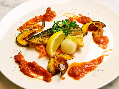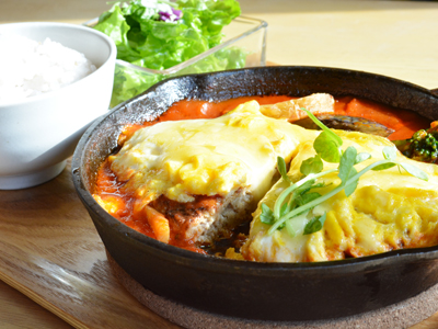 - サバのカレー風味ムニエル~トマトソース~(ライス・サラダ・スープ付)800円
