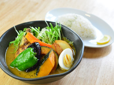 - 野菜と柔らか炙りチキンのスープカレー(ライス付)1,280円 ※季節により野菜が変更になる場合あり