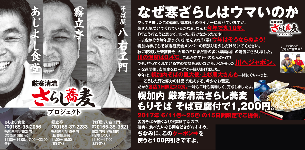 幌加内町のそば屋3店舗で、6月11日(日)から25日(日)まで、各店1日20食限定で提供されます。急げ~!(ライナー記者 菅原 愛子)